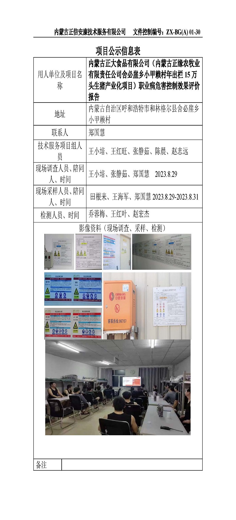內蒙古正大食品有限公司(內蒙古正緣農牧業(yè)有限責任公司舍必崖鄉小甲賴(lài)村年出欄15萬(wàn)頭生豬產(chǎn)業(yè)化項目)職業(yè)病危害控制效果評價(jià)
