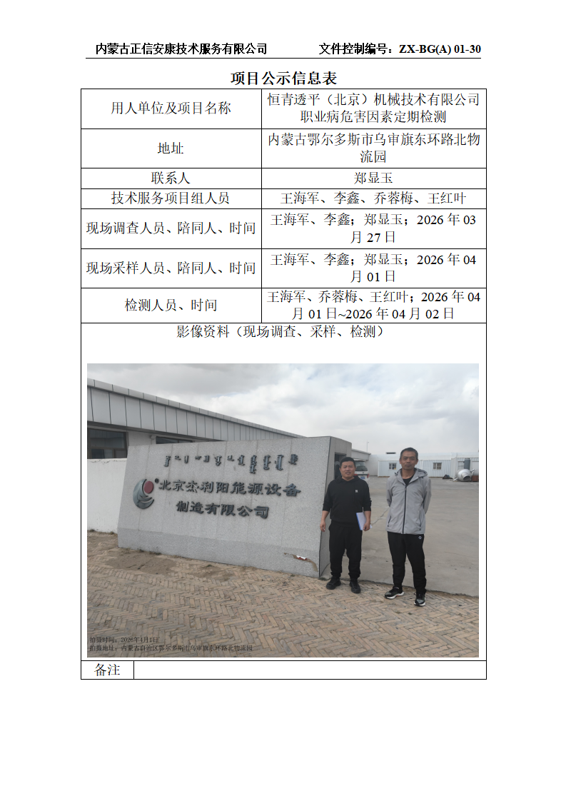 恒青透平(北京)機(jī)械技術(shù)有限公司職業(yè)病危害因素定期檢測