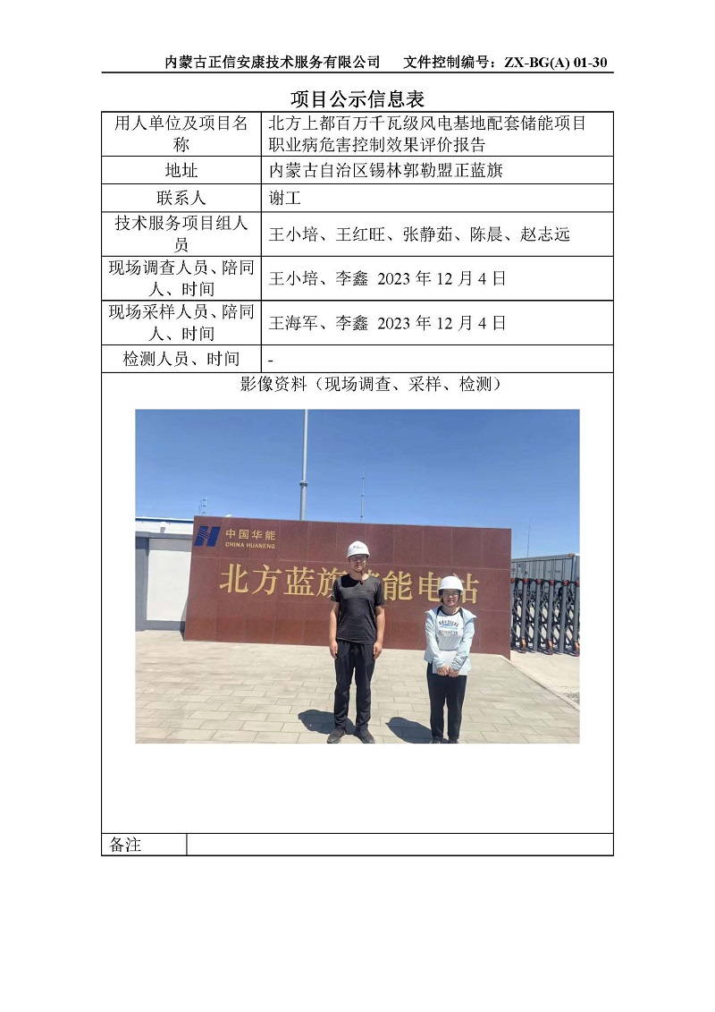 北方上都百萬千瓦級風電基地配套儲能項目職業(yè)病危害控制效果評價