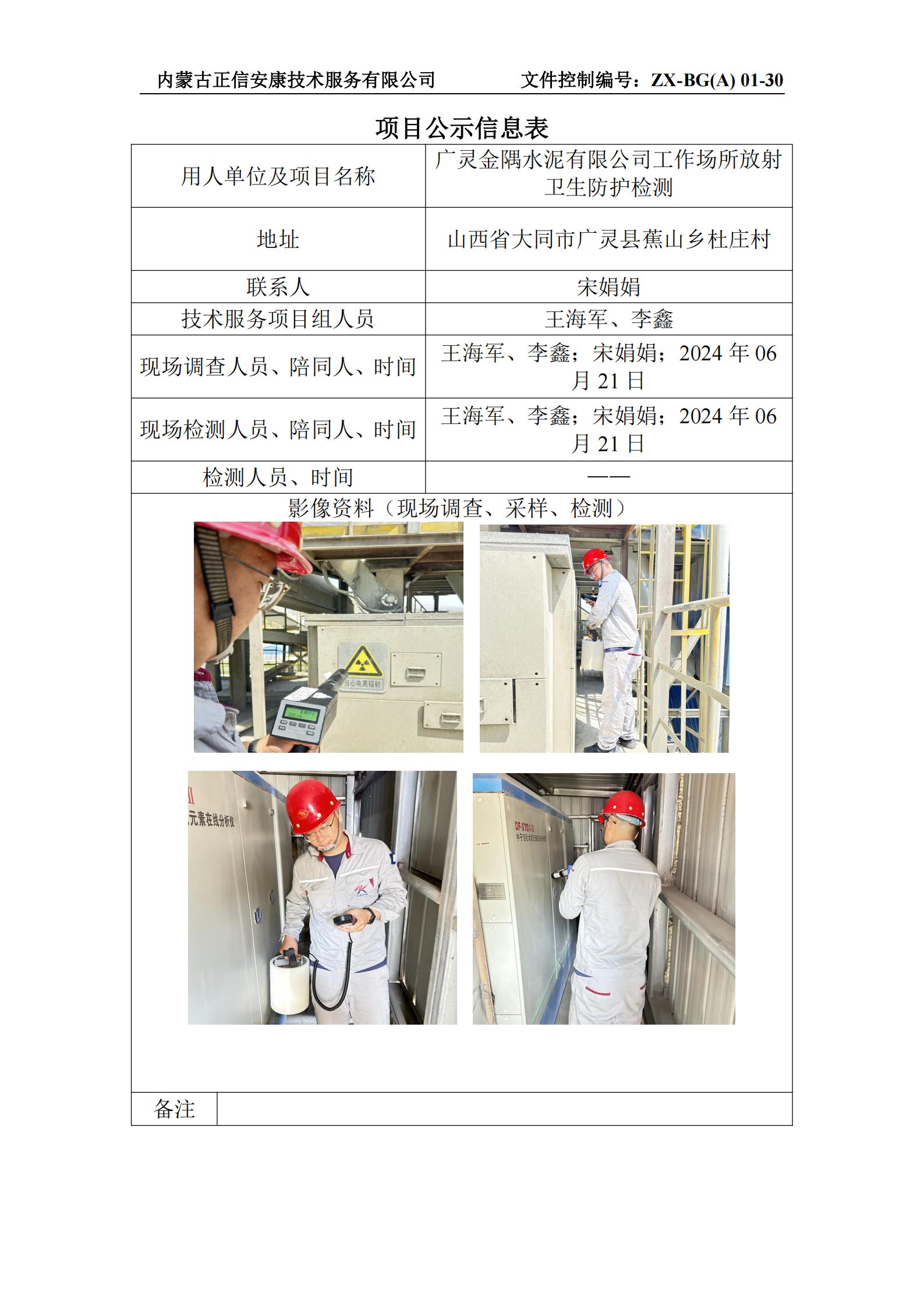 廣靈金隅水泥有限公司工作場(chǎng)所放射 衛生防護檢測