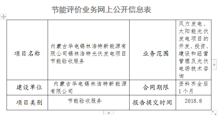 3、內蒙古華電錫林浩特新能源有限公司錫林浩特光伏發(fā)電項目節能驗收服務(wù)
