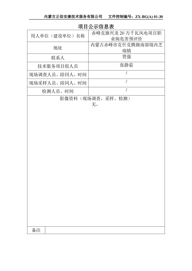赤峰克旗興龍20萬(wàn)千瓦風(fēng)電項目職業(yè)病危害預評價(jià)