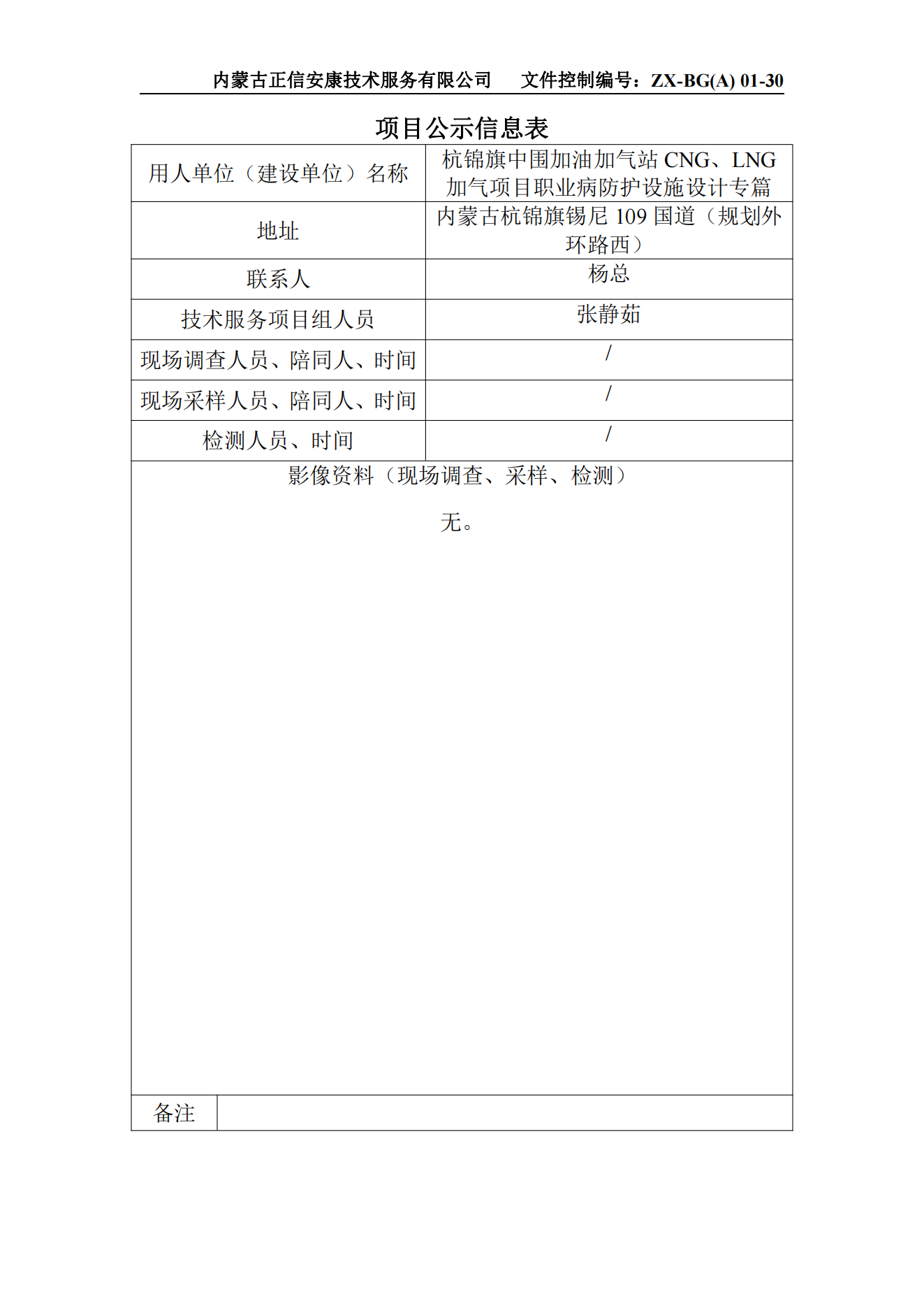 杭錦旗中圍加油加氣站CNG、LNG加氣項目職業(yè)病防護設施設計專(zhuān)篇