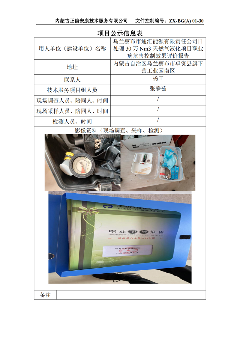 烏蘭察布市通匯能源有限責任公司日處理30萬(wàn)Nm3天然氣液化項目職業(yè)病危害控制效果評價(jià)