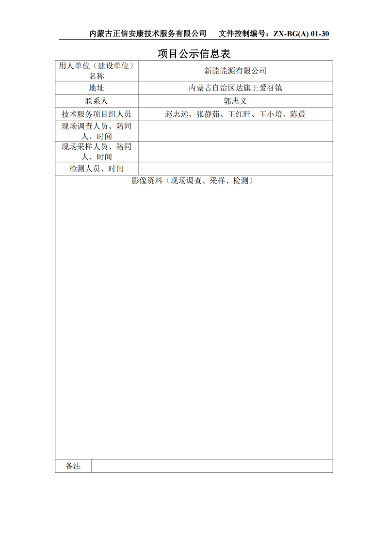 新能能源有限公司放空燃料氣資源回收利用項目(余氣回收1×2.0MW發(fā)電項目)職業(yè)病危害預評價(jià)報告項目公示信息表