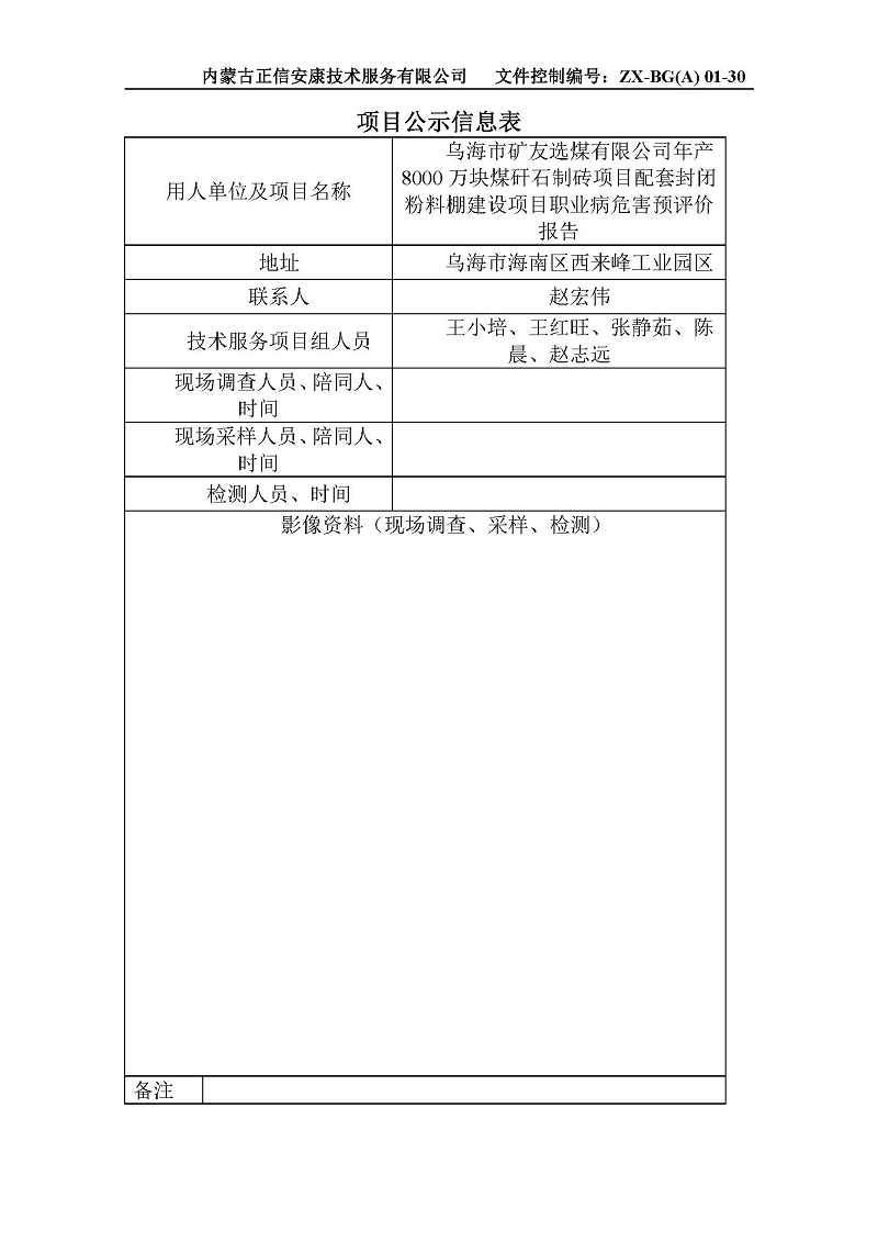 烏海市礦友選煤有限公司年產(chǎn)8000萬(wàn)塊煤矸石制磚項目配套封閉粉料棚建設項目 預評