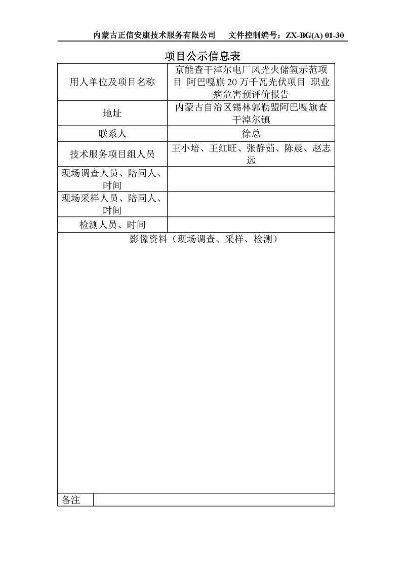 京能查干淖爾電廠(chǎng)風(fēng)光火儲氫示范項目 阿巴嘎旗20萬(wàn)千瓦光伏項目 職業(yè)病危害預評價(jià)報告
