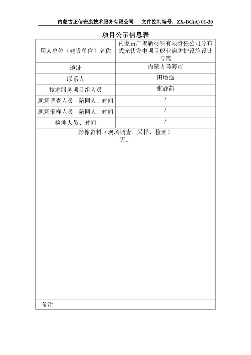 內蒙古廣聚新材料有限責任公司分布式光伏發(fā)電項目職業(yè)病防護設施設計專(zhuān)篇