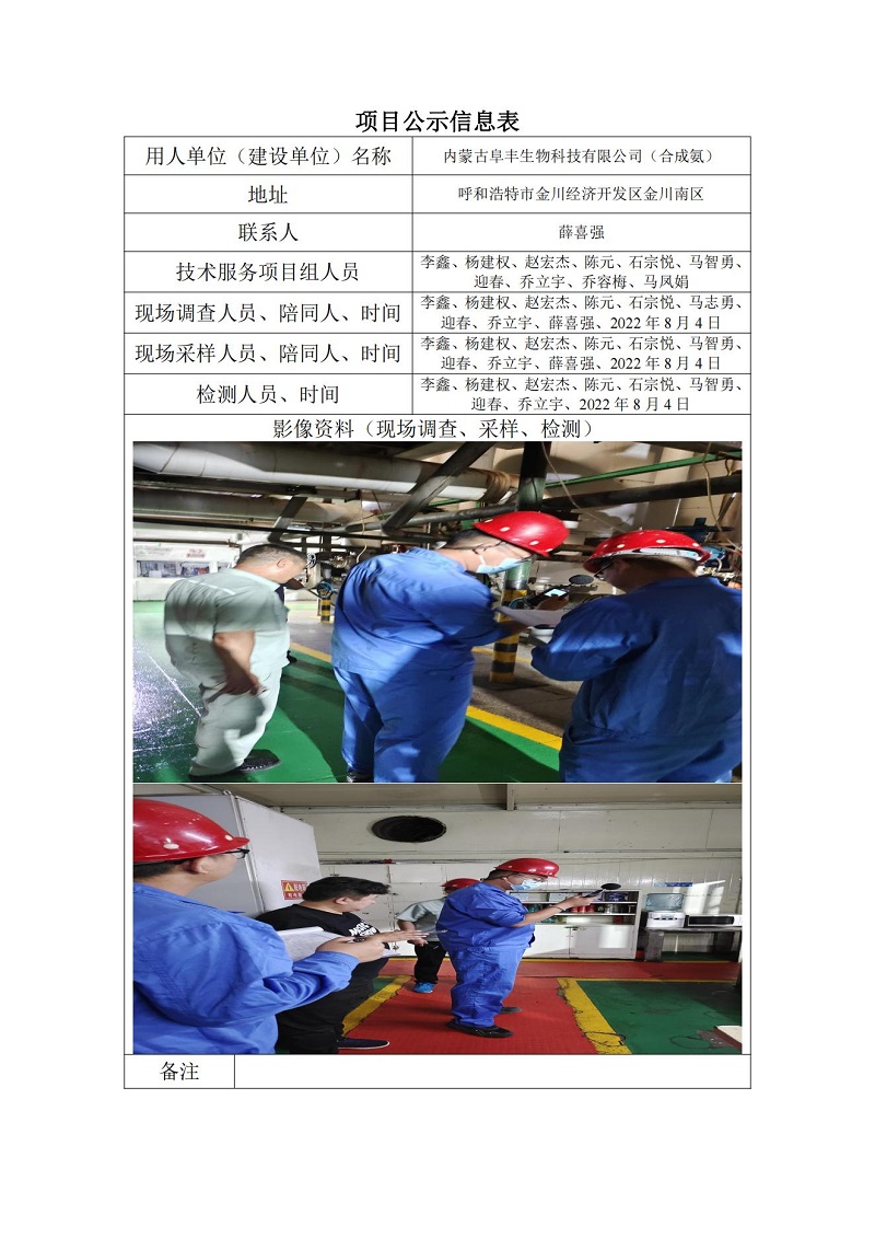 內蒙古阜豐生物科技有限公司(合成氨)定期檢測項目公示
