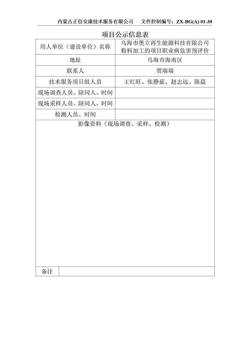 奧利粉料加工預評項目公示信息表