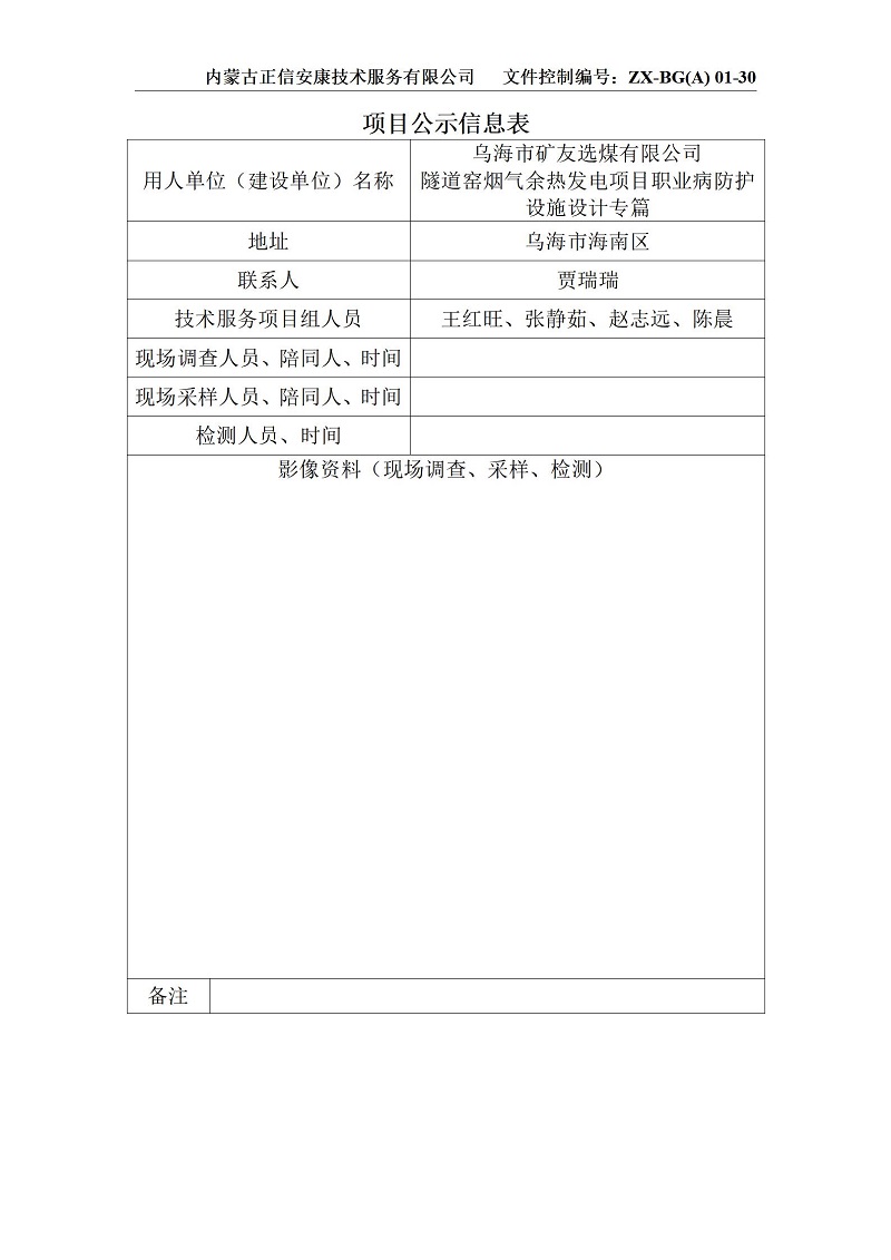 礦友余熱發(fā)電專(zhuān)篇項目公示信息表
