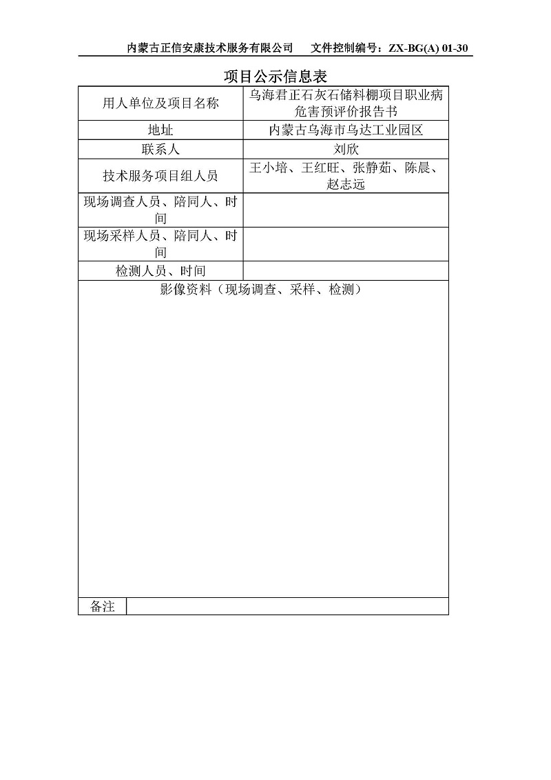 烏海君正石灰石儲料棚項目職業(yè)病危害預評價(jià)