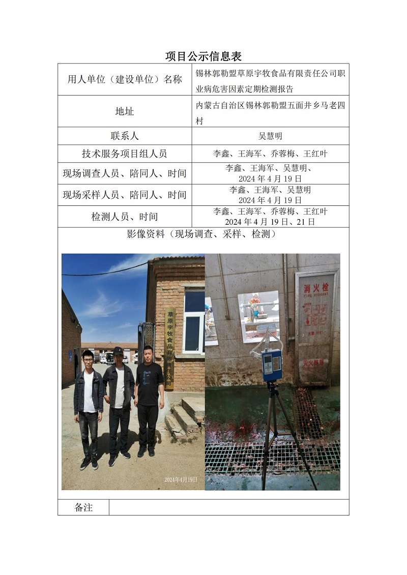 錫林郭勒盟草原宇牧食品有限責任公司定期檢測
