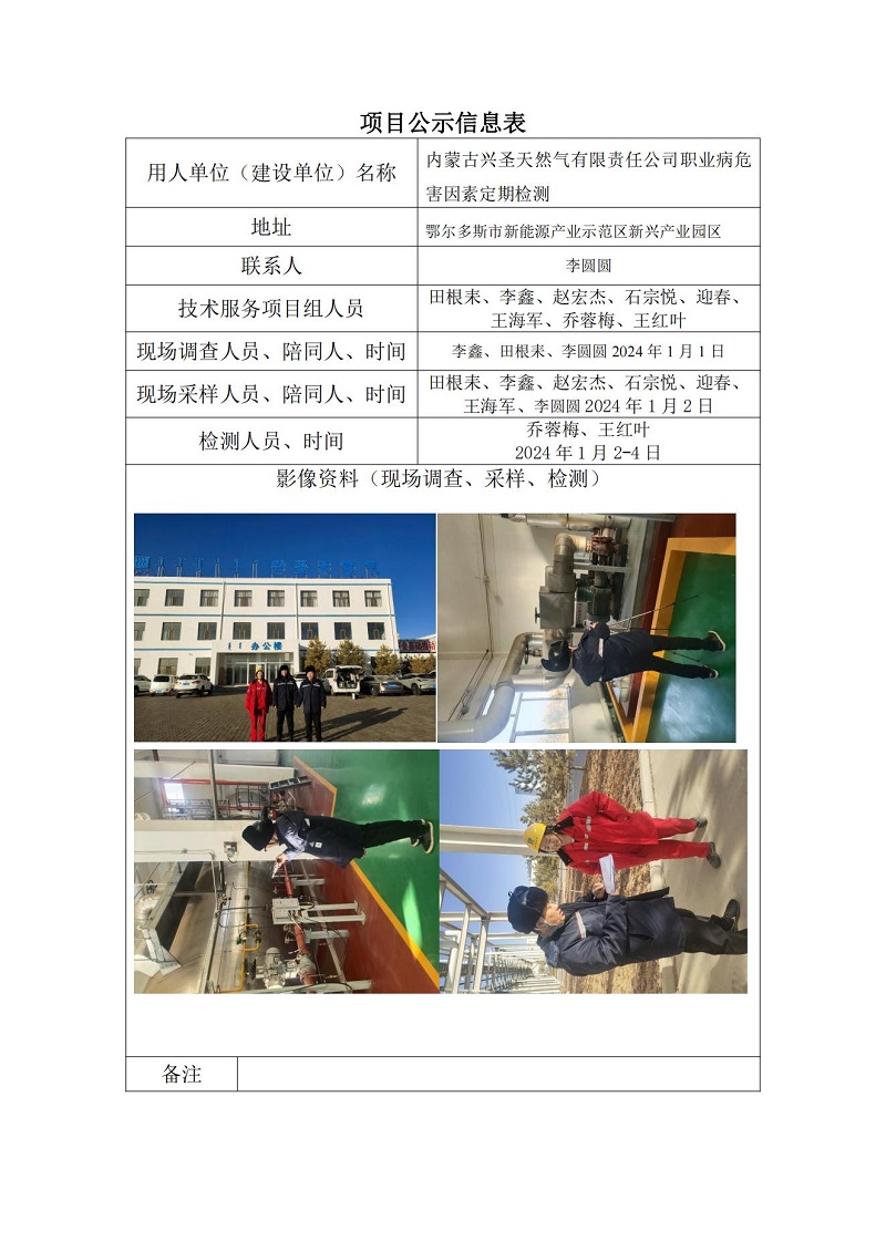 內蒙古興圣天然氣有限責任公司職業(yè)病危害因素定期檢測