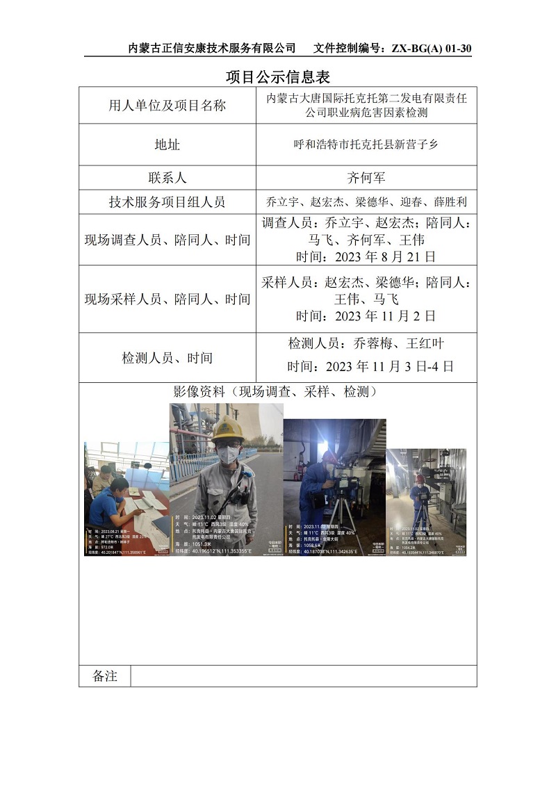 內(nèi)蒙古大唐國際托克托第二發(fā)電有限責(zé)任公司職業(yè)病危害因素檢測項(xiàng)目公示信息表(1)