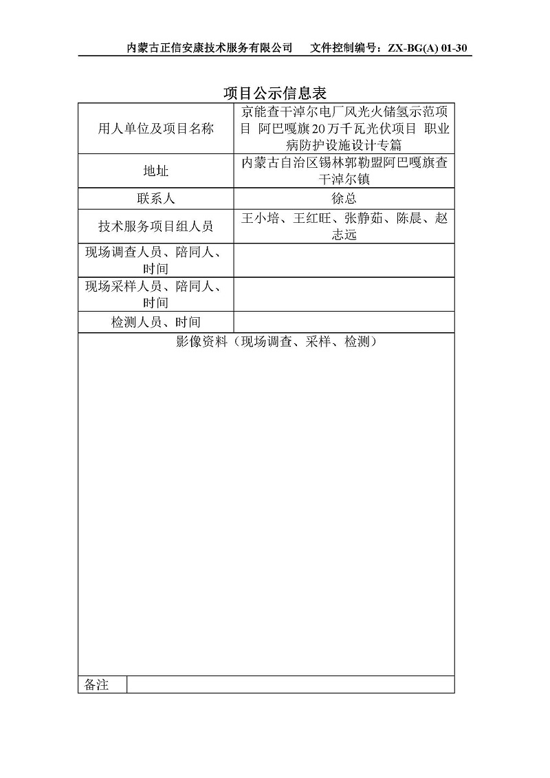 京能查干淖爾電廠(chǎng)風(fēng)光火儲氫示范項目 阿巴嘎旗20萬(wàn)千瓦光伏項目 職業(yè)病防護設施設計專(zhuān)篇公示信息表