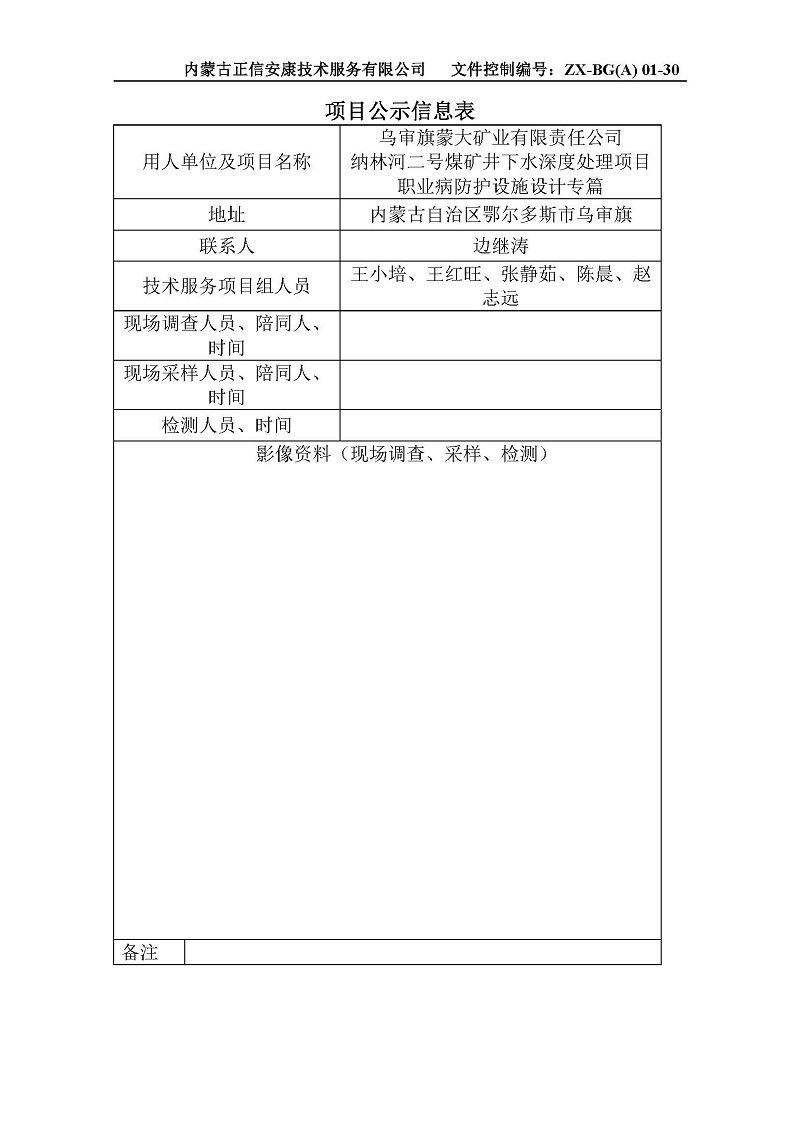 烏審旗蒙大礦業(yè)有限責任公司納林河二號煤礦井下水深度處理項目職業(yè)病防護設施設計專(zhuān)篇信息公示表