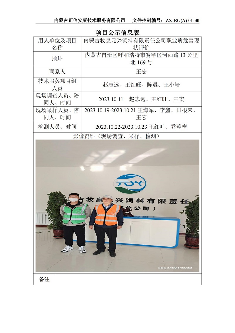內蒙古牧泉元興現狀-項目公示信息表