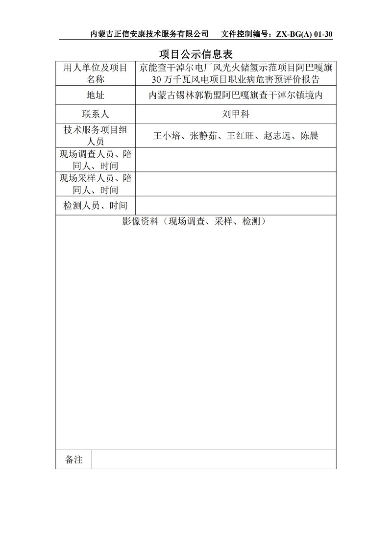 京能查干淖爾電廠(chǎng)風(fēng)光火儲氫示范項目阿巴嘎旗30萬(wàn)千瓦風(fēng)電項目職業(yè)病危害預評價(jià)項目公示信息表