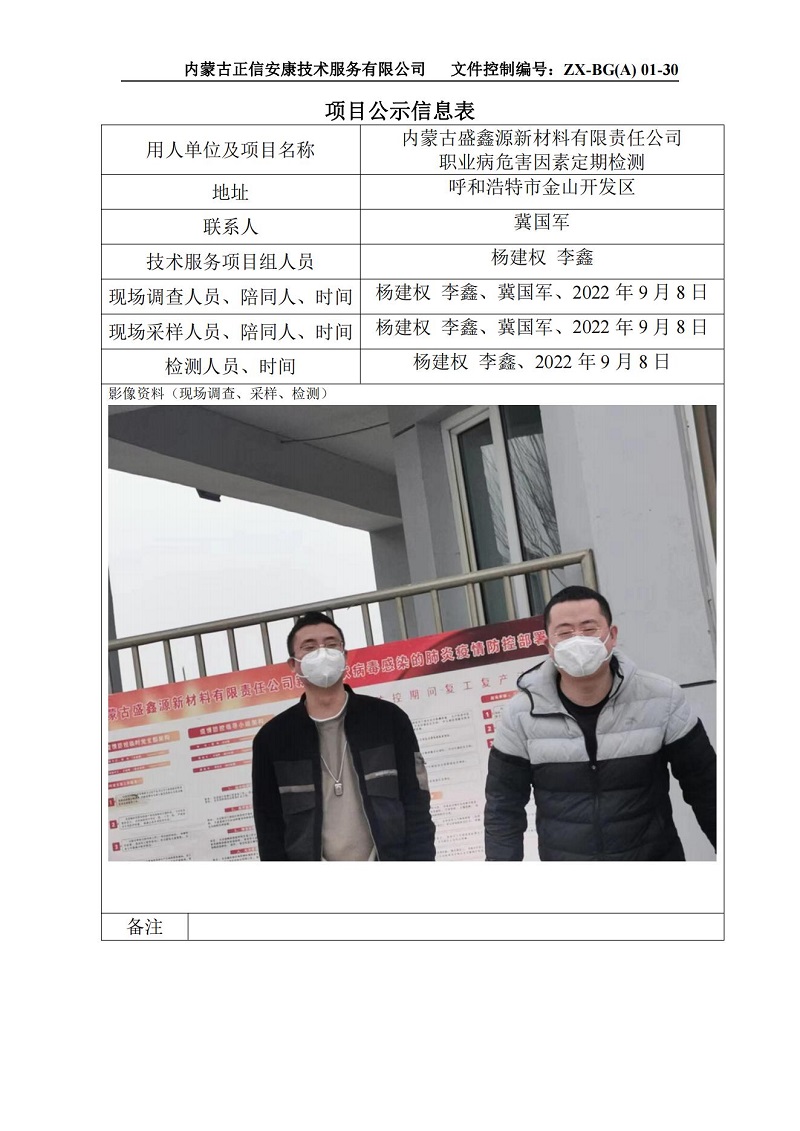 內蒙古盛鑫源新材料有限責任公司定檢信息公示