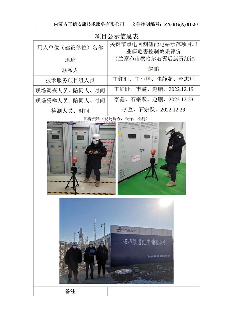 遠景能源公司關(guān)鍵節點(diǎn)電網(wǎng)側儲能電站示范項目控評公示信息表