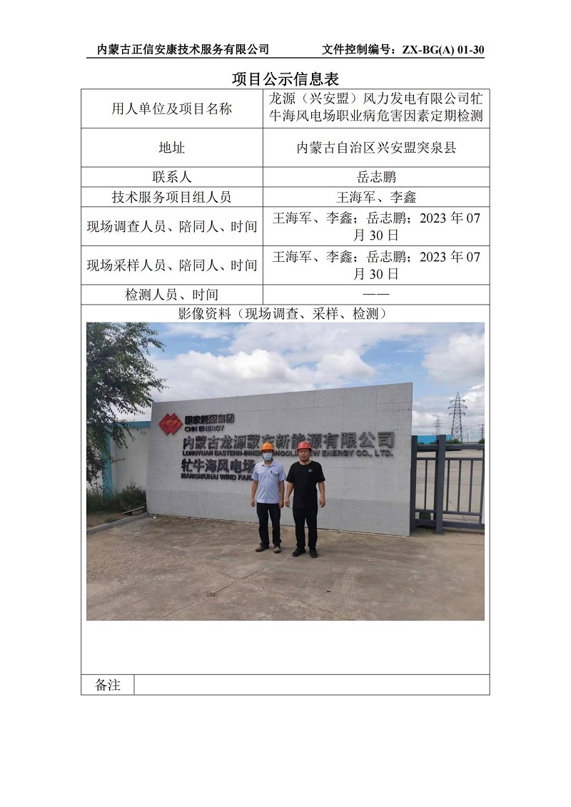 龍源(興安盟)風(fēng)力發(fā)電有限公司牤牛海風(fēng)電場(chǎng)職業(yè)病危害因素定期檢測