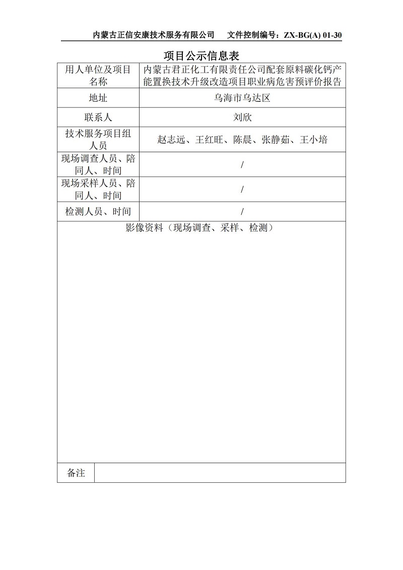 內蒙古君正化工有限責任公司優(yōu)化原料配比節能環(huán)保技改項目職業(yè)病危害預評價(jià)報告-項目公示信息表