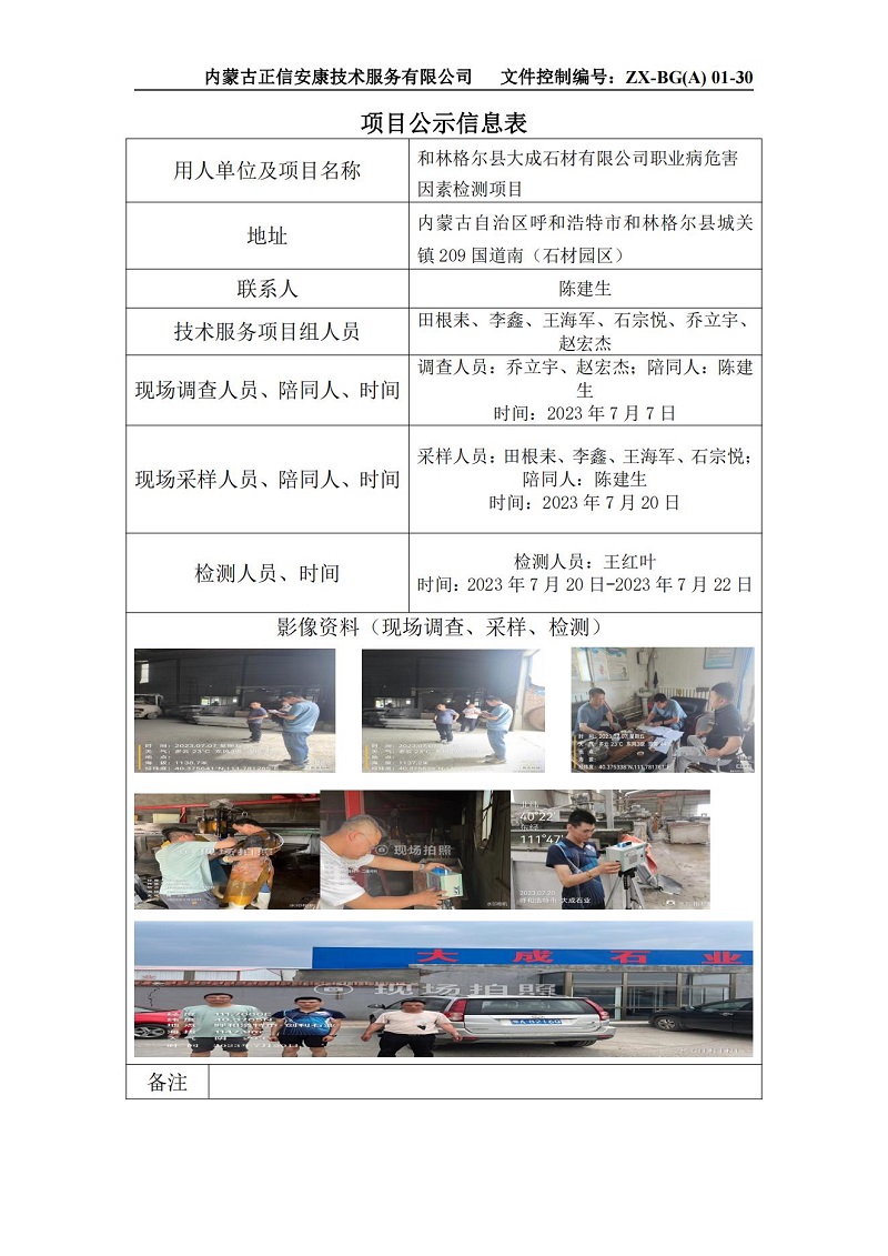 和林格爾縣新華林石業(yè)有限責任公司職業(yè)病危害因素檢測項目公示信息表_00