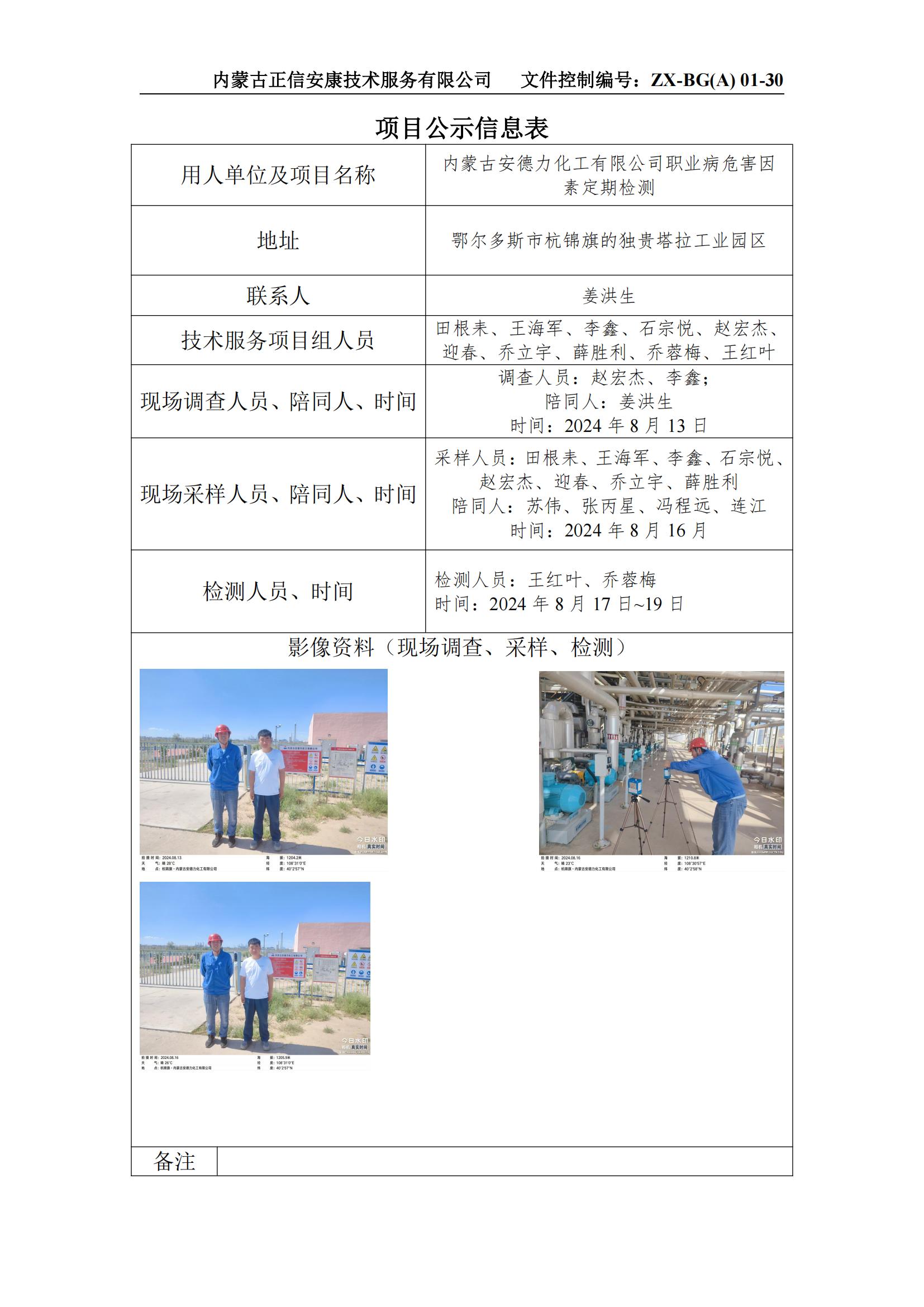 內(nèi)蒙古安德力化工有限公司職業(yè)病危害因素定期檢測