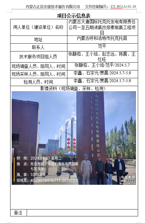 內(nèi)蒙古大唐國際托克托發(fā)電有限責任公司一至五期液氨改尿素制氨工程項目職業(yè)病危害控制效果評價
