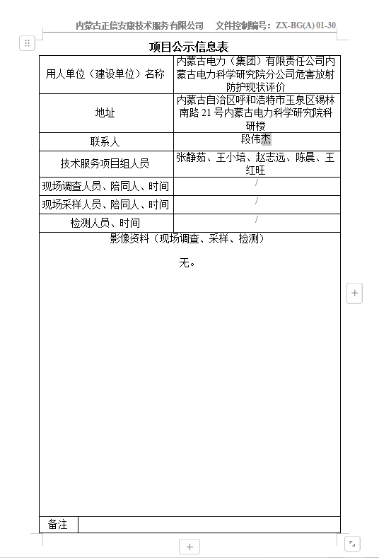 內蒙古電力(集團)有限責任公司內蒙古電力科學(xué)研究院分公司 職業(yè)病危害放射防護現狀評價(jià)
