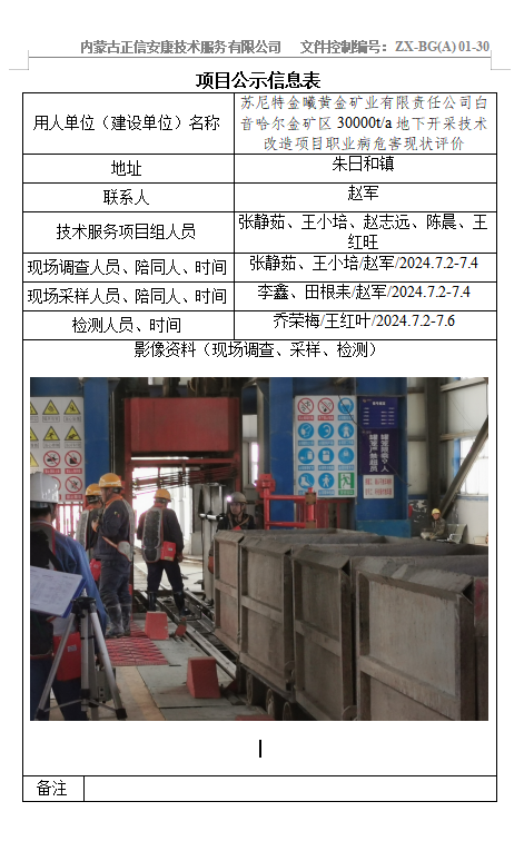 蘇尼特金曦黃金礦業(yè)有限責任公司白音哈爾金礦區30000t/a地下開(kāi)采技術(shù)改造項目職業(yè)病危害現狀評價(jià)