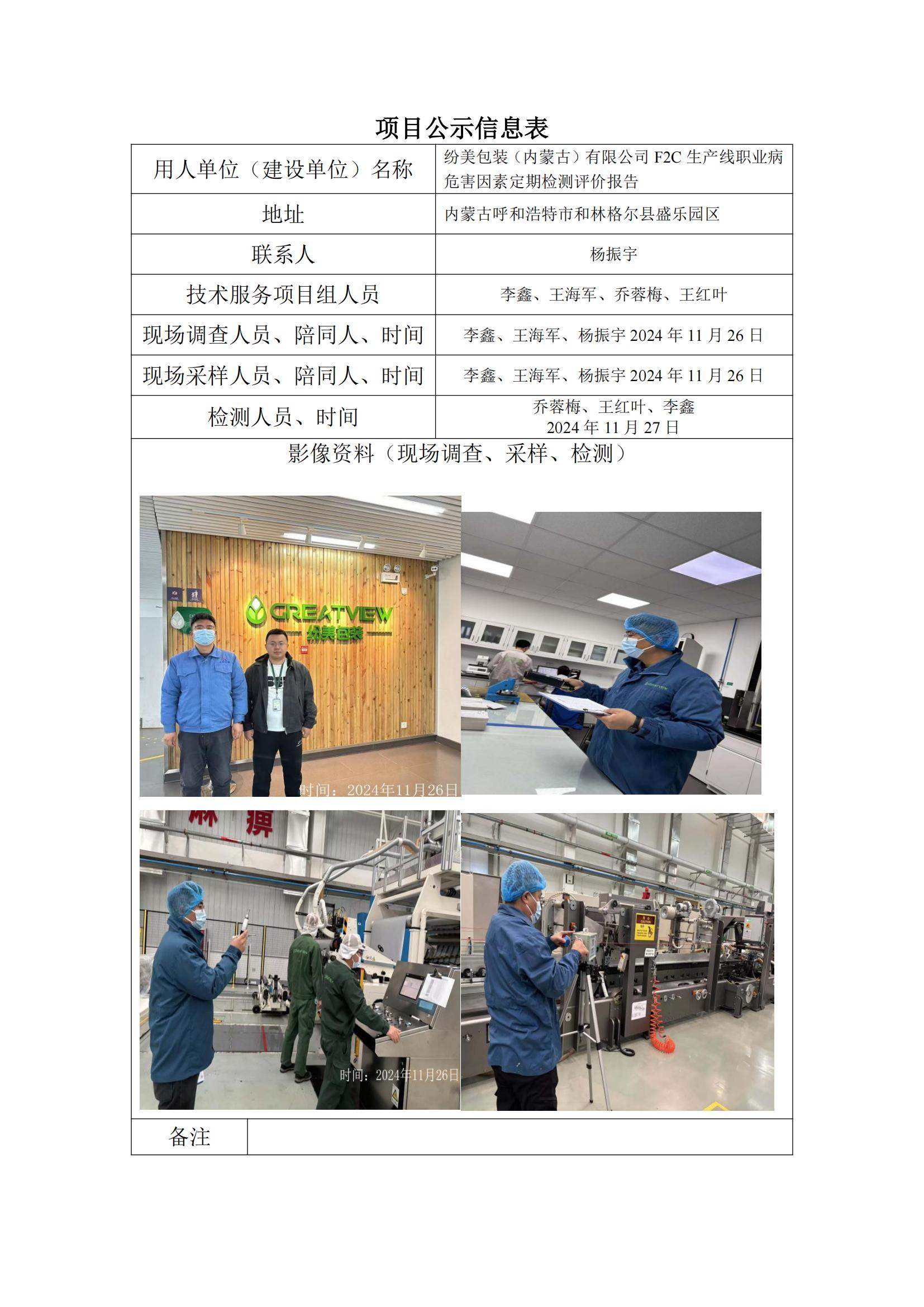紛美包裝(內蒙古)有限公司 F2C 生產(chǎn)線(xiàn)職業(yè)病 危害因素定期檢測評價(jià)報告