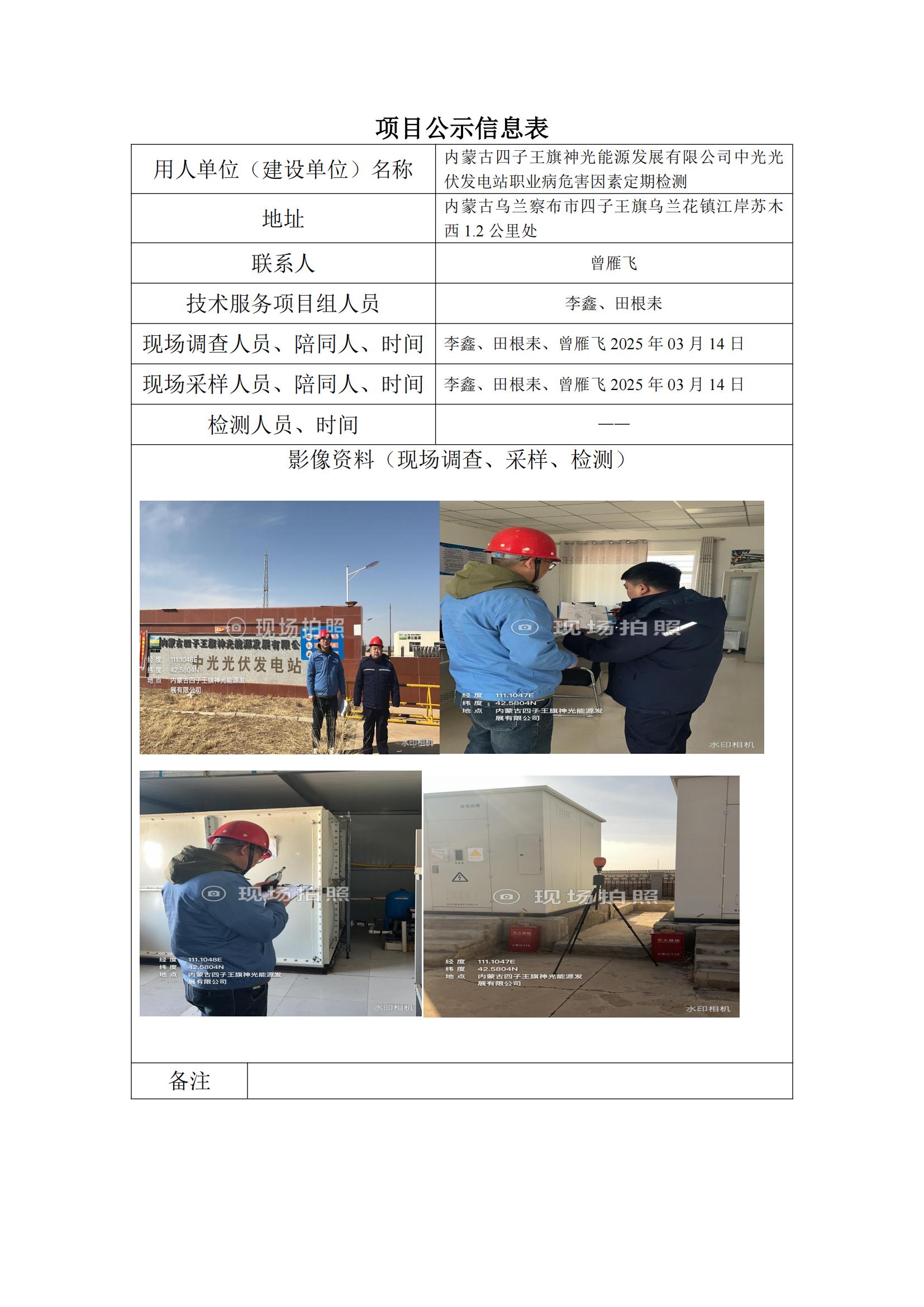 內蒙古四子王旗神光能源發(fā)展有限公司中光光伏發(fā)電站職業(yè)病危害因素定期檢測