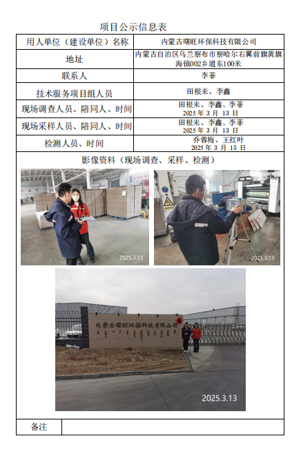內蒙古曙旺環(huán)??萍加邢薰韭殬I(yè)病危害因素定期檢測