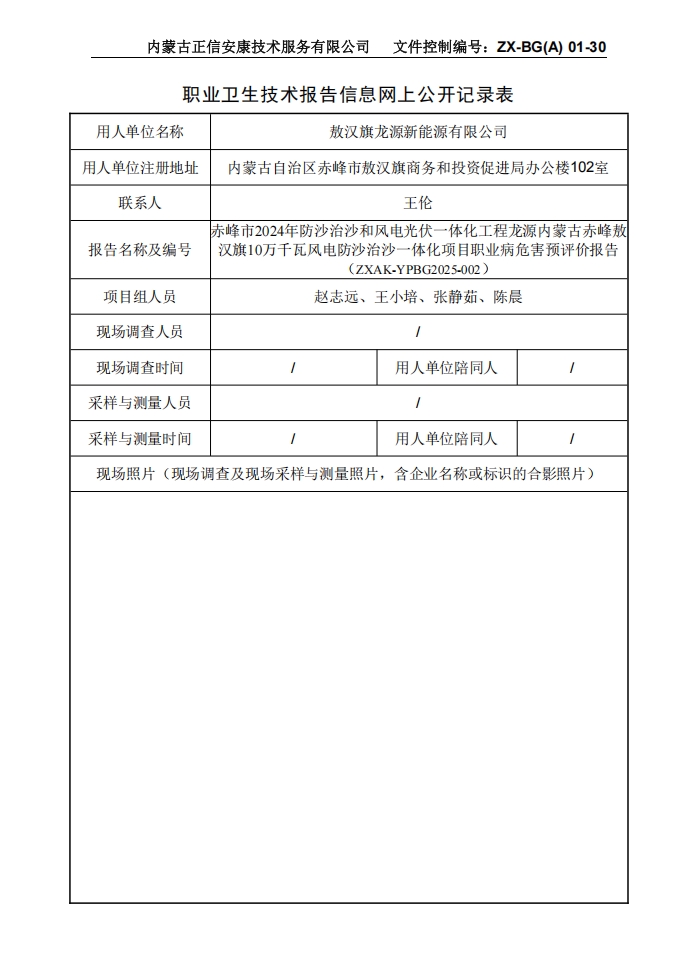 赤峰市2024年防沙治沙和風(fēng)電光伏一體化工程龍源內蒙古赤峰敖漢旗10萬(wàn)千瓦風(fēng)電防沙治沙一體化項目職業(yè)病危害預評價(jià)報告 -
