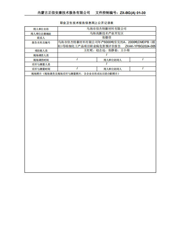 烏海市倍杰特新材料有限公司年產(chǎn)6000噸引發(fā)劑A、2000噸DMDPB(聯(lián) 枯)等精細(xì)化工產(chǎn)品項(xiàng)目職業(yè)病危害預(yù)評(píng)價(jià)報(bào)告