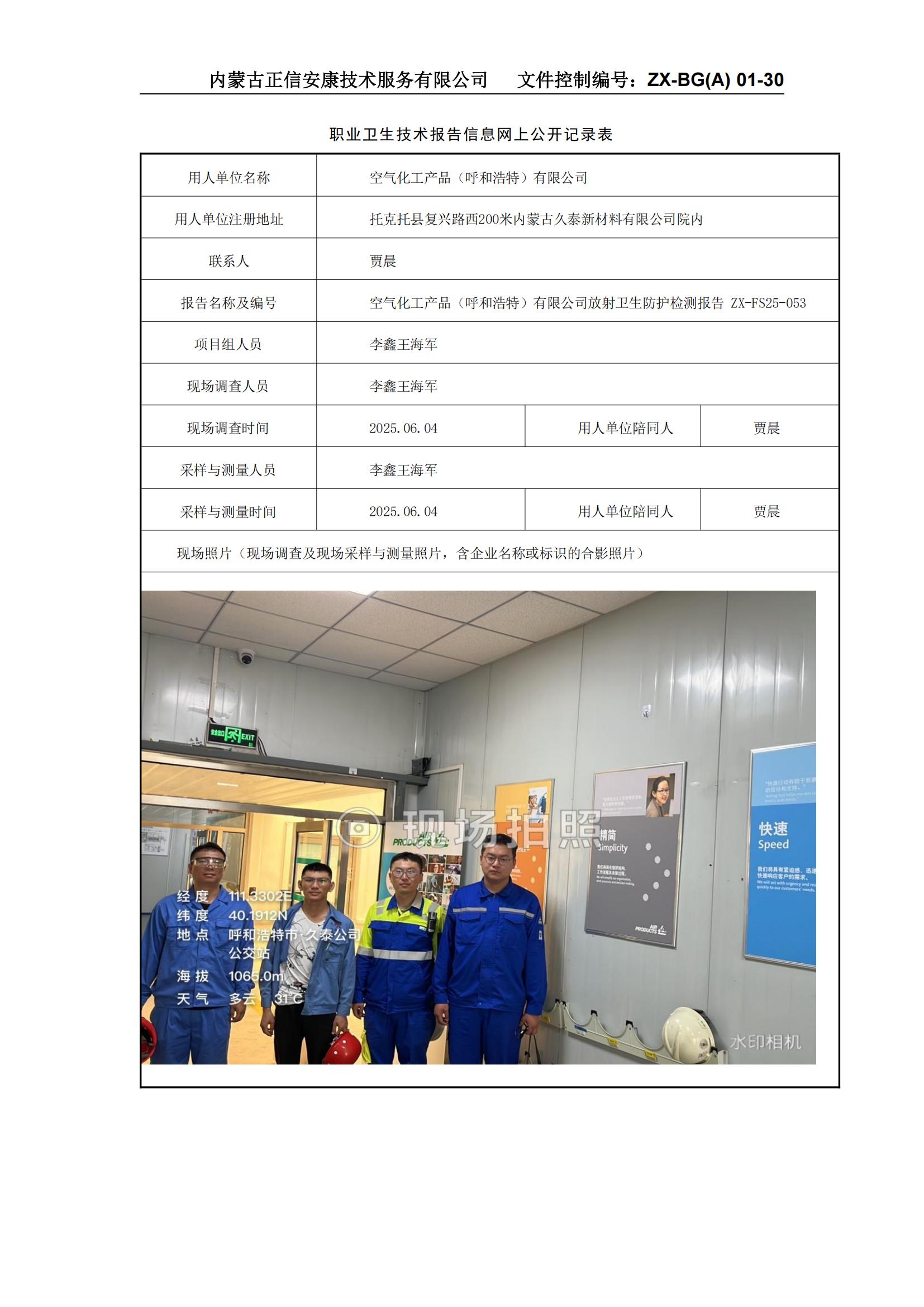 空氣化工產(chǎn)品(呼和浩特)有限公司放射衛生防護檢測