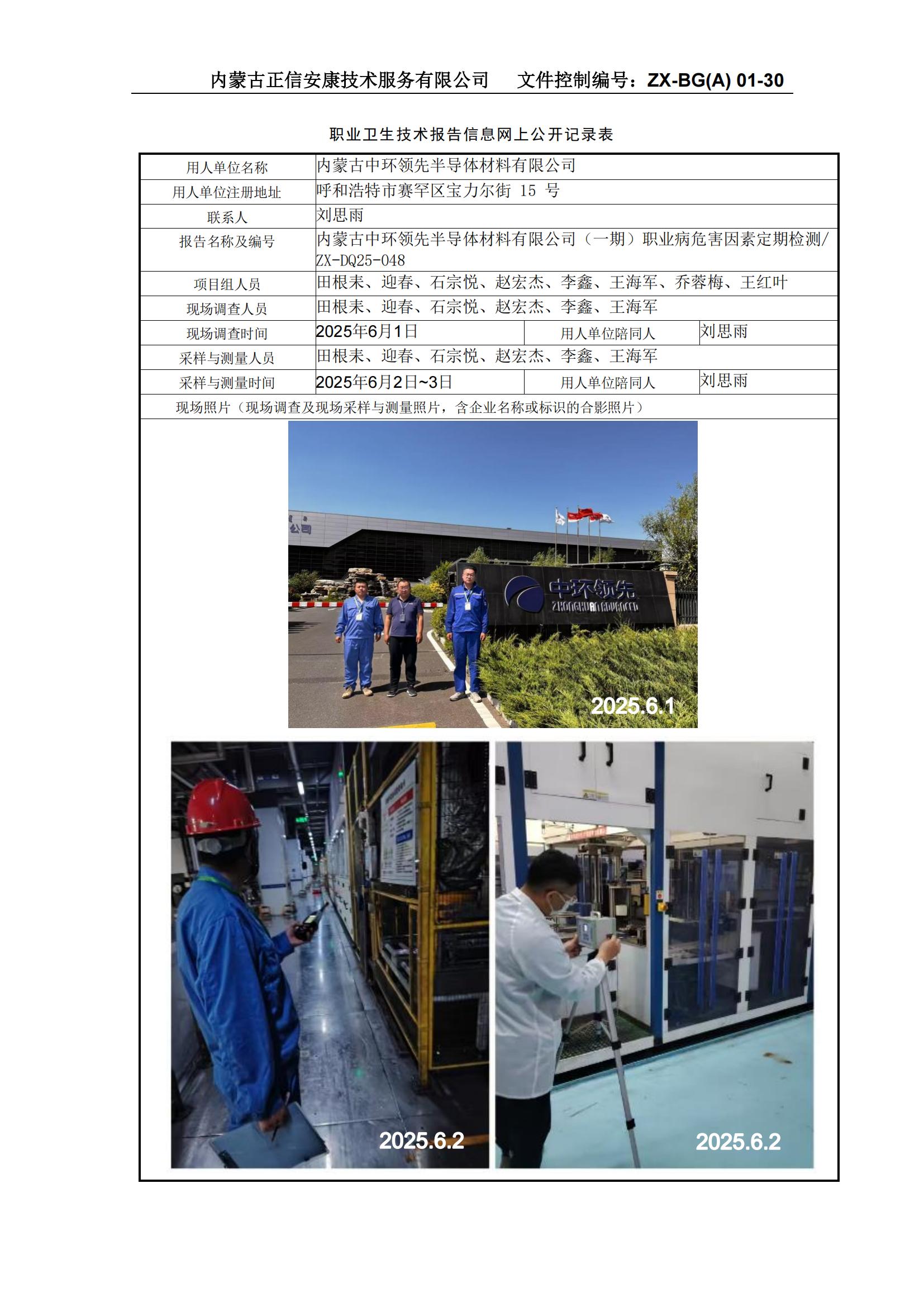 內(nèi)蒙古中環(huán)領先半導體材料有限公司(一期)職業(yè)病危害因素定期檢測