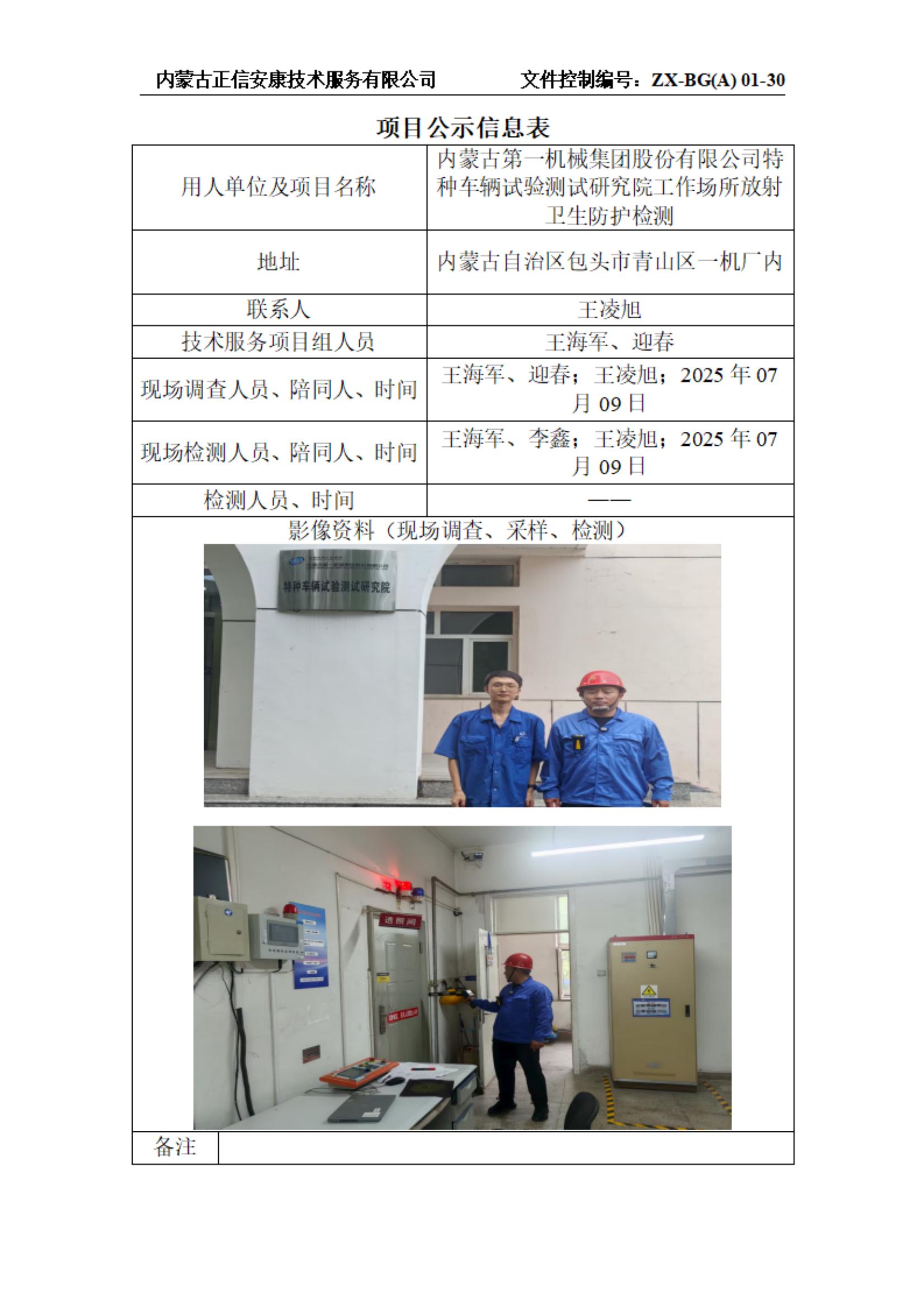 內蒙古第一機械集團股份有限公司特種車(chē)輛試驗測試研究院工作場(chǎng)所放射 衛生防護檢測