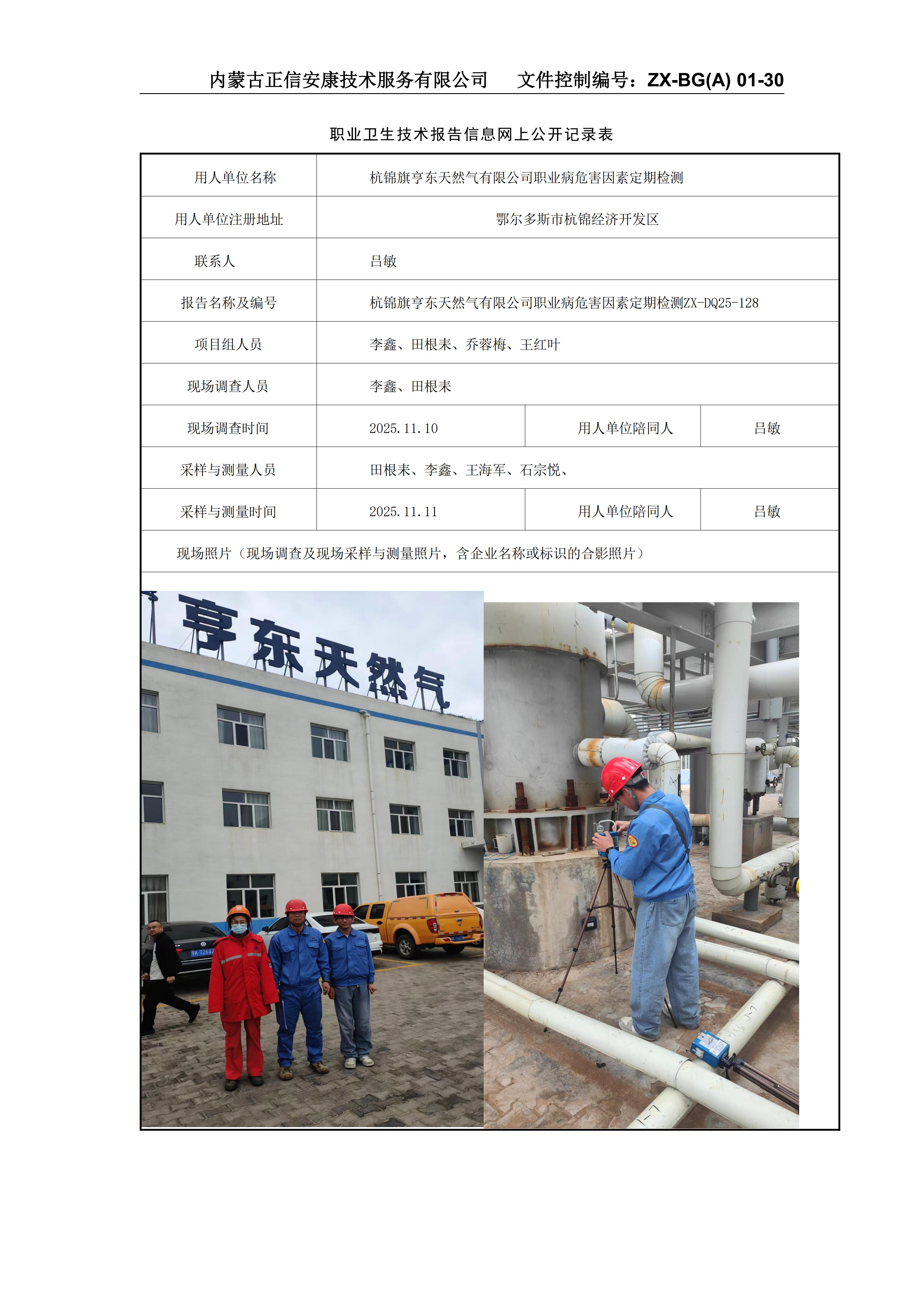 杭錦旗亨東天然氣有限公司職業(yè)病危害因素定期檢測