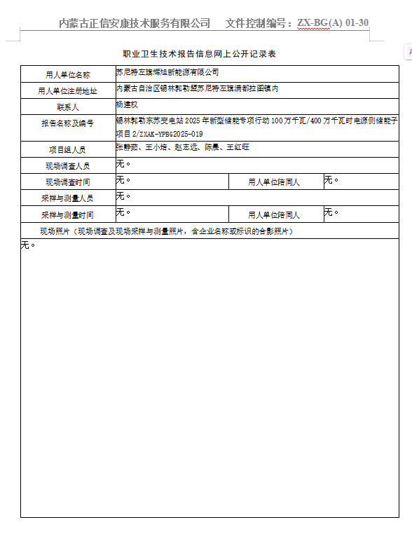 錫林郭勒東蘇變電站2025年新型儲(chǔ)能專項(xiàng)行動(dòng)100萬(wàn)千瓦/400萬(wàn)千瓦時(shí)電源側(cè)儲(chǔ)能子項(xiàng)目2職業(yè)病危害預(yù)評(píng)價(jià)