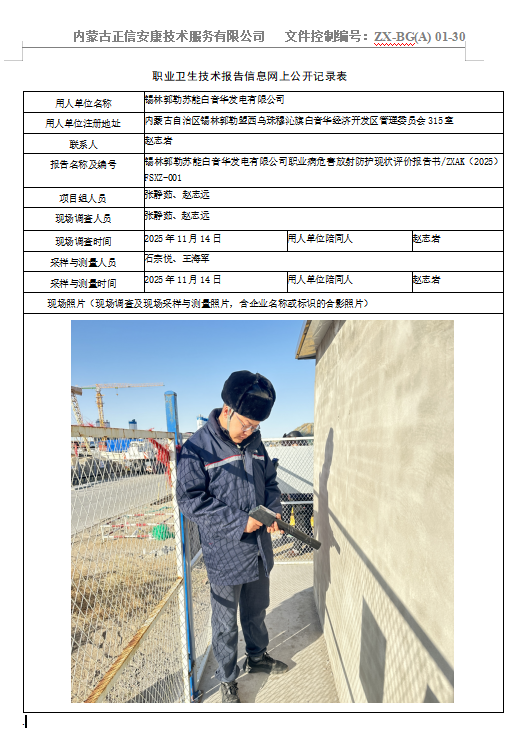 錫林郭勒蘇能白音華發(fā)電有限公司職業(yè)病危害放射防護(hù)現(xiàn)狀評(píng)價(jià)報(bào)告書